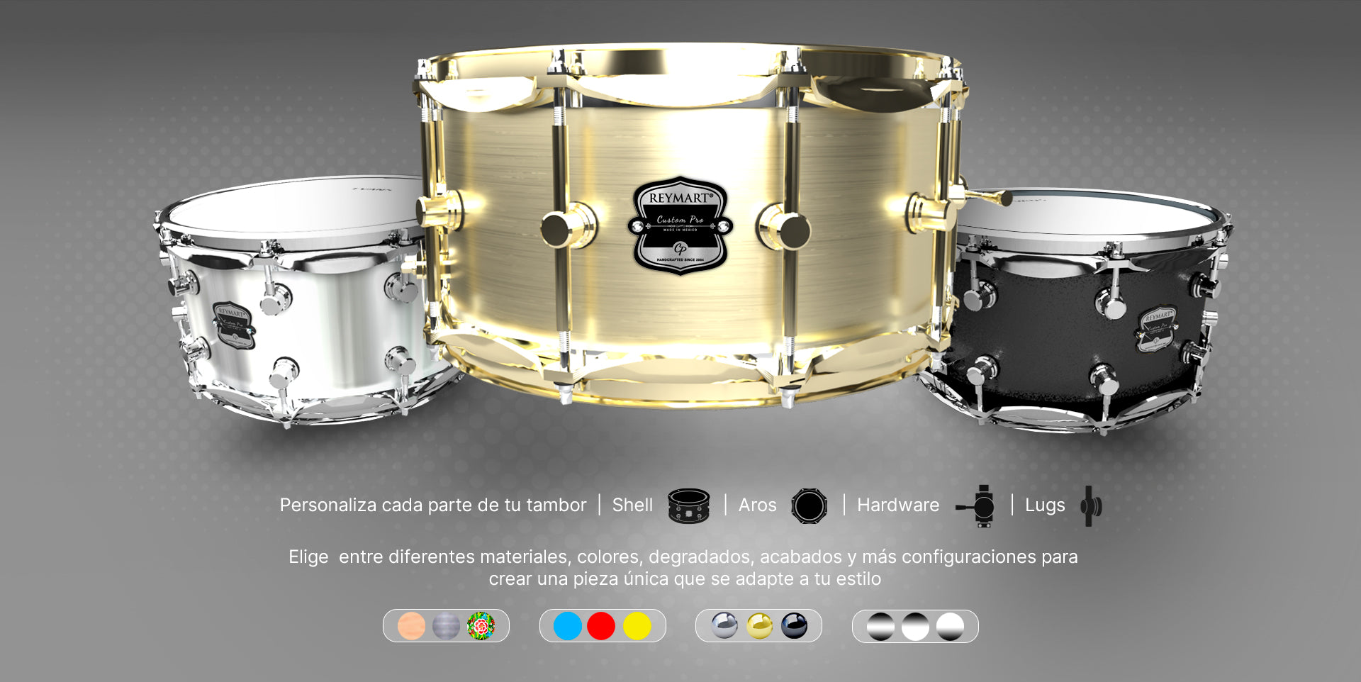 Disponibles en acero, aluminio y latón, seleccionados por sus excelentes propiedades acústicas. Cada tarola se fabrica con láminas de 2.7 mm de grosor, garantizando un sonido potente y duradero.