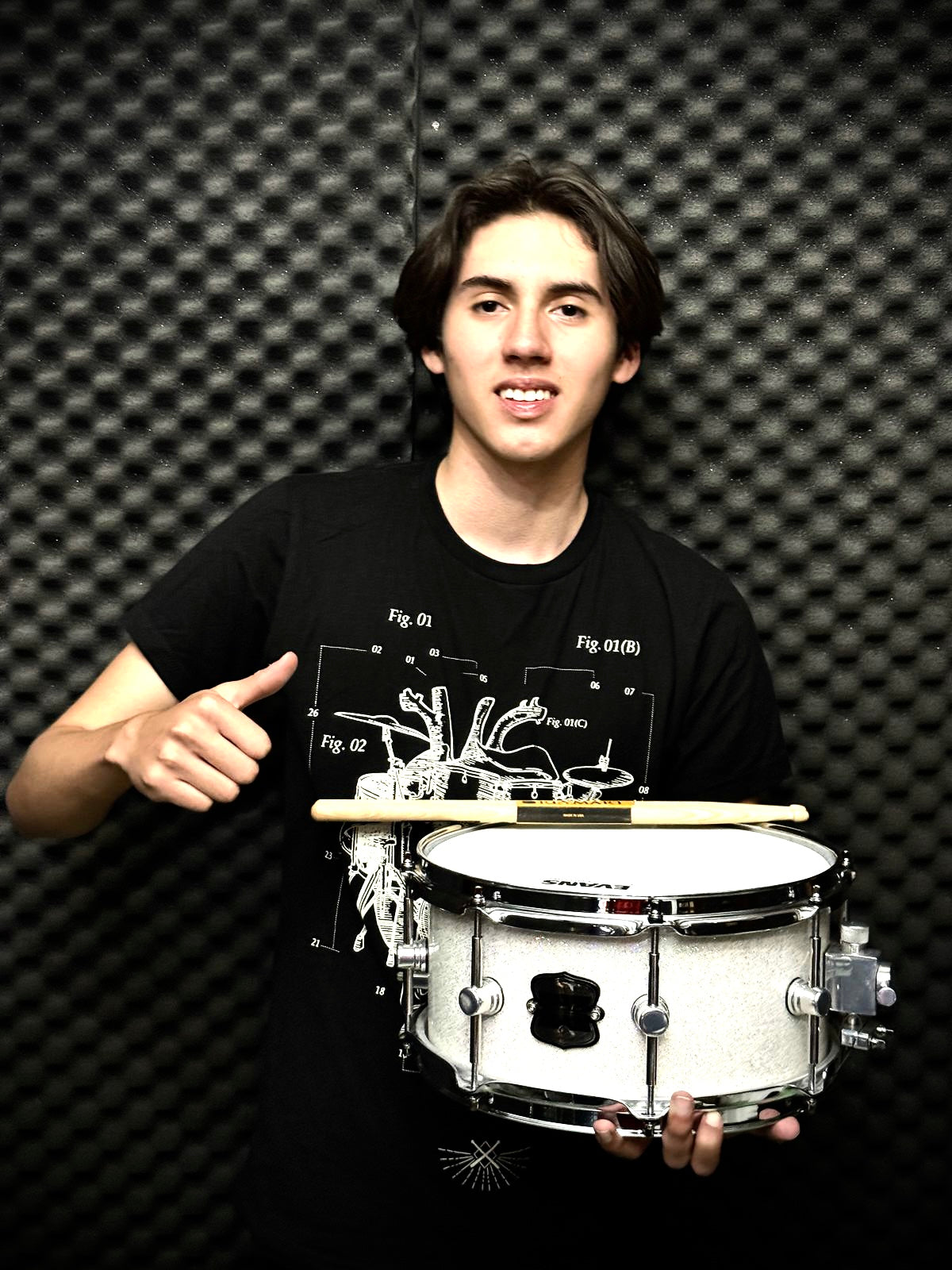 En 2025, Carlos Verde se unió a la familia Reymart®, gracias a la recomendación de nuestro amigo Charly Rosales, con quien tomaba clases de batería. Fue en una de esas sesiones donde Carlitos tuvo la oportunidad de probar la tarola de Charly y, convencido de su sonido y potencia, decidió que era la opción perfecta para el norteño.