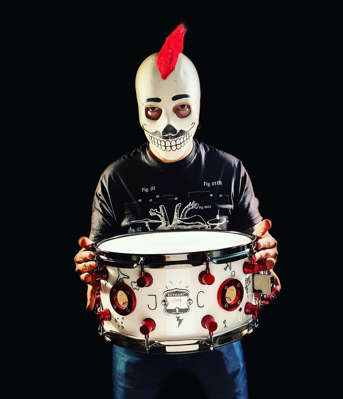 En 2019, Charal se unió a la familia Reymart®, y confiamos en él para crear una tarola de metal completamente personalizada, diseñada para complementar perfectamente el estilo musical que lo caracteriza. Con una fuerte presencia en el escenario y un sonido único, Charal sigue confiando en Reymart® para sus necesidades sonoras, siempre buscando la excelencia en cada golpe.