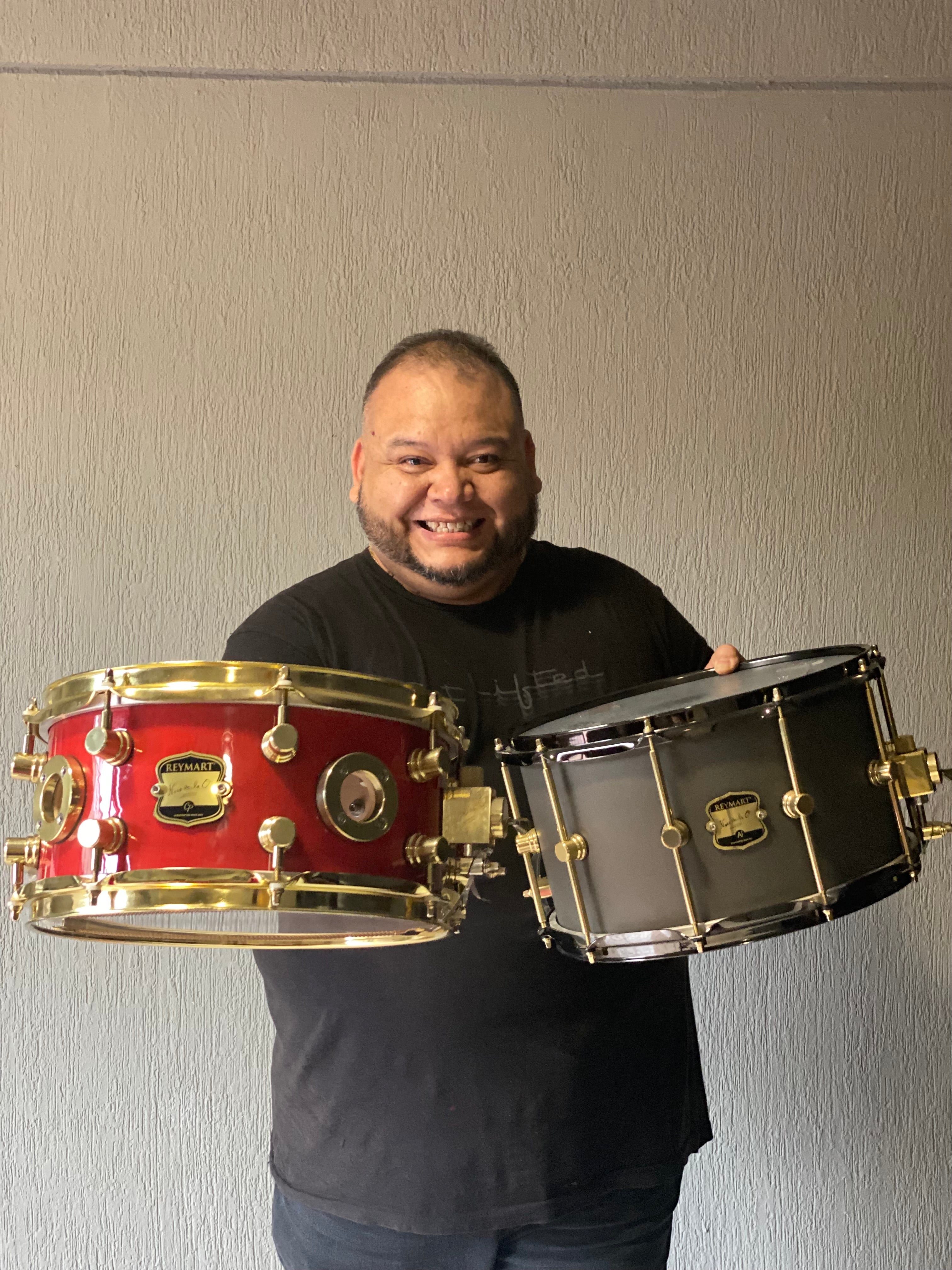 En abril de 2024, Augusto se unió a la familia Reymart®, y desde entonces ha confiado en nosotros para crear dos tarolas y un Shell Pack completamente personalizados, reflejando su estilo único y su pasión por la música.