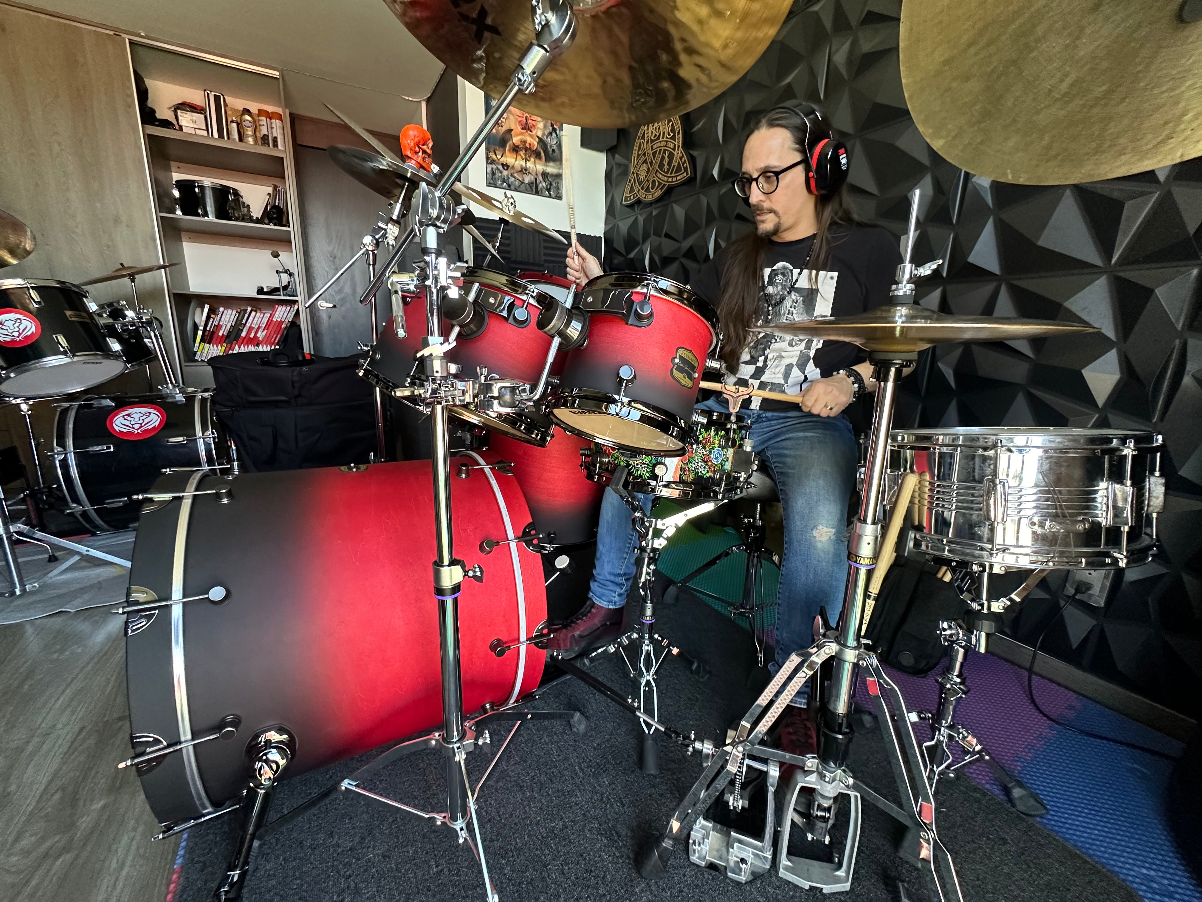 No pasó mucho tiempo antes de que le fabricáramos un shell pack monstruoso de 7 piezas, el cual ahora forma parte fundamental de su equipo. Como dato curioso, en la Soundcheck Xpo 2024, Cbas adquirió su timbal de 10", firmado por el baterista Alfonso André.